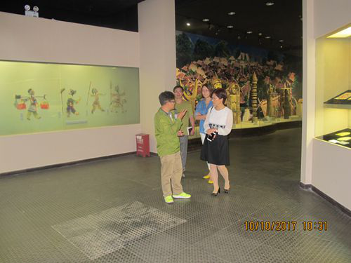 2017年10日10日,貴州民(mín)族文(wén)化宮主任、貴州省民(mín)族博物(wù)館田海霞館長(cháng)帶領文(wén)物(wù)、教育方面的專業技(jì )術人員到雲南民(mín)族博物(wù)館考察。受高力青館長(cháng)委托,張金文(wén)副館長(cháng)陪同來賓參觀《雲南民(mín)族服飾與紡織技(jì )藝》《民(mín)族文(wén)字與古籍》《民(mín)族樂器》《民(mín)間工(gōng)藝美術》等陳列,随後雙方進行了座談,就文(wén)物(wù)藏品征集管理(lǐ)、科(kē)學(xué)研究、博物(wù)館教育等深入交流,共同探讨民(mín)族博物(wù)館業務(wù)建設和發展,表示願意加強雙方業務(wù)聯系交流。