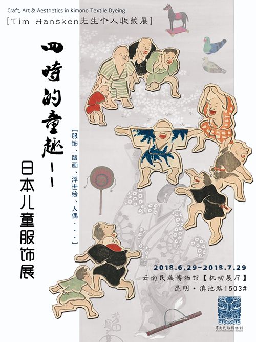 2018年6月29日——7月29日,《四時的童趣——日本兒童服飾展》在雲南民(mín)族博物(wù)館一樓機動展廳展出。本展覽以春、夏、秋、冬四季為(wèi)線(xiàn)索,展出有(yǒu)日本兒童服飾,兒童玩具(jù)版畫,浮世繪,人偶等,展示傳統日本兒童世界的物(wù)質(zhì)文(wén)化。願這些優美可(kě)愛的物(wù)件使你體(tǐ)會到童年生活的樂趣。