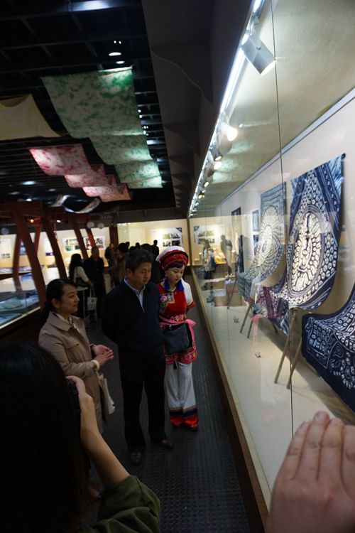 展覽荟萃雲南民(mín)族博物(wù)館和大理(lǐ)璞真白族紮染博物(wù)館的白族紮染藏品精(jīng)華,通過源遠(yuǎn)流長(cháng)、巧手匠心、桃李天下、傳承創新(xīn)四個單元百餘件展品,如紮染二龍搶寶圖、紮染中(zhōng)華白族第一村、蒼山(shān)十九峰等匠心之作(zuò)展示了白族紮染的曆史、傳統工(gōng)藝技(jì )法和圖案、培訓傳承和開拓創新(xīn)的現狀。省民(mín)族宗教委副主任李正洪在高力青館長(cháng)和策展人員的陪同下,興緻勃勃地觀看了展覽,并指出此次項目展立意新(xīn)穎,小(xiǎo)中(zhōng)見大,内容精(jīng)當,形式生動;視頻宣傳片、微信二維碼、白族紮染技(jì )藝展演和體(tǐ)驗極大地增加了展覽的趣味性和互動性,是一次成功的嘗試,民(mín)博應該在今後的工(gōng)作(zuò)中(zhōng)多(duō)加探索和鼓勵類似具(jù)有(yǒu)創新(xīn)性的展覽項目。