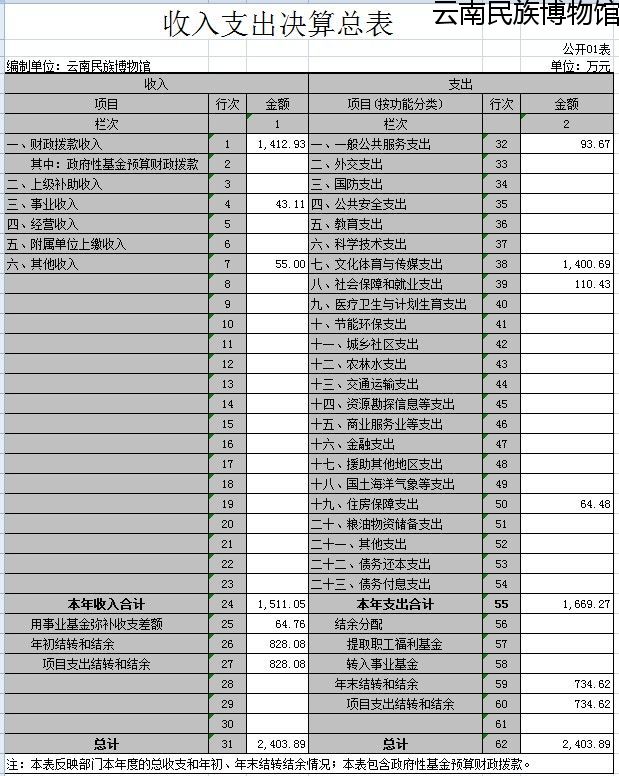 雲南民(mín)族博物(wù)館2016年度部門決算報表
